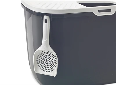 Voor extra hygiëne is het deksel licht aflopend en voorzien van kleine gaatjes: als de kat over het deksel loopt bij het verlaten van de bak, valt de kattenbakvulling zo weer de bak in. Hierdoor blijft het gebied rondom de kattenbak vrij van grit en vuil. Bovendien is de bak voorzien van handgrepen in de bodem en een deksel dat kan worden opgehangen voor gemakkelijke reiniging. Ook kun je aan het haakje de kattenbakschep ophangen.