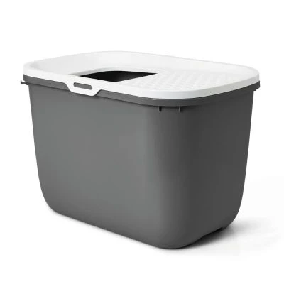 De Savic Kattenbak Hop In Antractiet/Wit 58,5X39X39,5 cm is een moderne kattenbak met boveninstap, ideaal voor katten die staand of achteruit plassen. Door de hoge zijkanten blijven alle grit, ontlasting en urine namelijk mooi in de bak! Katten zullen snel doorhebben hoe zij door de boveningang de kattenbak kunnen gebruiken. Door de grote opening kunnen de katten gemakkelijk in en uitstappen en is de bak ook geschikt voor grotere katten.