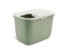 De Savic Kattenbak Hop In Botanical Groen 58,5X39X39,5 cm is een moderne kattenbak met boveninstap, ideaal voor katten die staand of achteruit plassen. Door de hoge zijkanten blijven alle grit, ontlasting en urine namelijk mooi in de bak! Katten zullen snel doorhebben hoe zij door de boveningang de kattenbak kunnen gebruiken. Door de grote opening kunnen de katten gemakkelijk in en uitstappen en is de bak ook geschikt voor grotere katten. Voor extra hygiëne is het deksel licht aflopend en voorzien van kleine gaatjes: als de kat over het deksel loopt bij het verlaten van de bak, valt de kattenbakvulling zo weer de bak in. Hierdoor blijft het gebied rondom de kattenbak vrij van grit en vuil. Bovendien is de bak voorzien van handgrepen in de bodem en een deksel dat kan worden opgehangen voor gemakkelijke reiniging. Ook kun je aan het haakje de kattenbakschep ophangen.