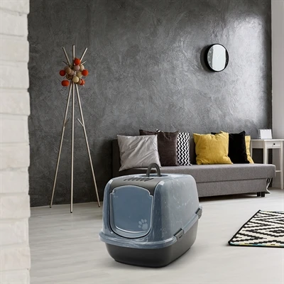 De kattenbak is uitgerust met handgreep, kunststof deur en verwisselbaar koolfilter om nare luchtjes rondom de kattenbak te voorkomen.