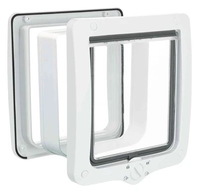 Het Trixie 4-Weg Kattenluik XL Inclusief Tunnelstuk 24X28 cm is een kunststof kattenluik speciaal voor grotere katten met transparante klep. Het luik heeft vier richtingen, namelijk alleen naar binnen, alleen naar buiten, allebei of geen van beiden. Door middel van de gemakkelijke draaisluiting kun je het luik openen en sluiten in de door jou gewenste richting. Het luik is uitgerust met een geluidsarme transparante klep en een TPR afdichtingsring. De klep sluit door middel van een magneetsluiting. Met drie jaar garantie!