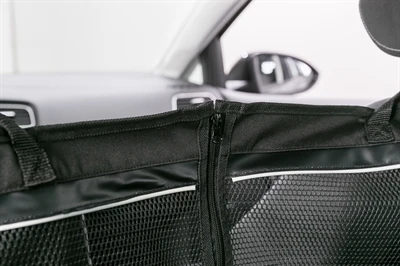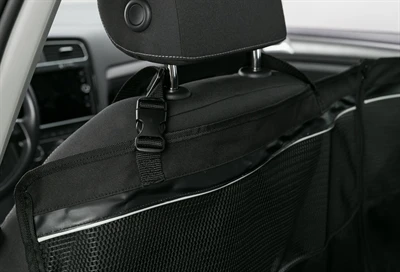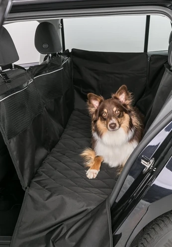 De Trixie Autobeschermdeken Zwart van 155X130 cm is een beschermdeken voor de hond, geschikt voor de achterbank van de auto, met anti-slip onderkant en hoge zijkanten. De ultieme bescherming voor jouw auto! Als jouw hond op de achterband meereist in de auto, wil je deze natuurlijk beschermen tegen haren, zand, vocht en vuil. Deze handige autobeschermdeken van Trixie is daar speciaal voor ontworpen. Deze deken is gemaakt van polyester, met een anti-slip onderzijde die ervoor zorgt dat het deken stevig op zijn plek blijft in de auto. Ook zijn er lussen gemaakt voor om de hoofdsteunen van zowel de voor- en achterstoelen voor meer stabiliteit; bovendien zorgen de hoge zijkanten voor extra bescherming van de deurbekleding. De zijkanten kunnen opengeritst worden en naar beneden geklapt om het in- en uitstappen te vergemakkelijken. Er zijn uitsparingen in het deken aangebracht om de veiligheidsriem van de hond vast te maken en je kunt het deken in tweeën splitsen, zodat er nog iemand op de achterbank kan zitten. Het deken is waterdicht en beschermt jouw bekleding zo ook op regenachtige dagen!