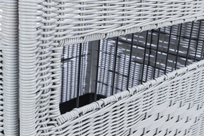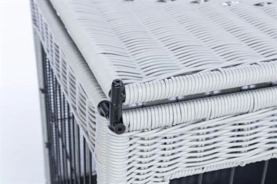 De Trixie Bench Homekennel Polyrotan Lichtgrijs 58 x 77 x 60 cm is een stijlvolle en praktische bench voor de hond, met traliewerk bekleed met polyrotan en een kunststof schuiflade. Vind jij een normale, geheel metalen hondenbench afbreuk doen aan jouw interieur? Of voelt jouw hond zich niet veilig in de open, metalen benches? Kies dan voor deze bench met polyrotan! Deze bench heeft een stevige kern van van metalen traliewerk, maar is aan de buitenzijde bekleed met polyrotan voor een stijlvolle uiterlijk én beschutte ruimte voor jouw viervoeter. De bench is aan de voorkant te openen en heeft een kunststof schuiflade, die het reinigen van de bench erg makkelijk maakt.