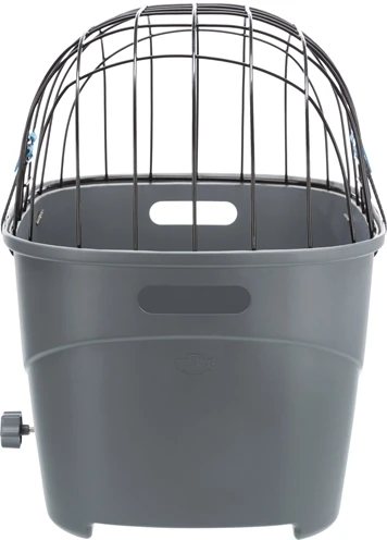 De Trixie Fietsmand Voor Bagagedrager Met Draadkoepel Kunststof Grijs 46X36X47 cm is een kunststof fietsmand voor de hond, met snelbevestiging en ligmat.