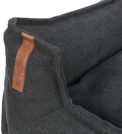 De Trixie Hondenmand Be Nordic Fohr Hoekig Zwart 60X50 cm is een robuuste hondenmand met handvat en slip vaste onderkant. De hondenmand is gefabriceerd in Europa en voelt aan als canvas, maar heeft een katoen-polyester bekleding die je kunt afnemen. De mand is gevuld met silicone en schuimrubberen vlokken en heeft een vast geïntegreerd kussen, zodat hij extra lekker ligt voor jouw hond. De mand heeft aan de voorkant een handvat, gemaakt van touw wat zorgt voor een robuuste uitstraling en door de handvat kun je de mand ook makkelijk oppakken. Verder heeft de mand een slip vaste onderkant, zodat hij op zijn plaats blijft liggen als jouw hond er een dutje in doet.
