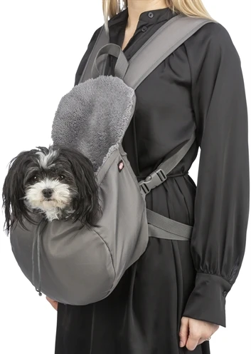 De Trixie Hondentas buikdrager Molly Grijs 25X17X38 cm is een buikdrager om de hond mee te nemen op wandelingen of uitstapjes. De tas is zeer comfortabel op de buik te dragen: hij is voorzien van brede, gevoerde, traploos verstelbare schouderriemen en een verstelbare tailleriem. De geïntegreerde korthouder voorkomt dat het dier uit de tas springt.