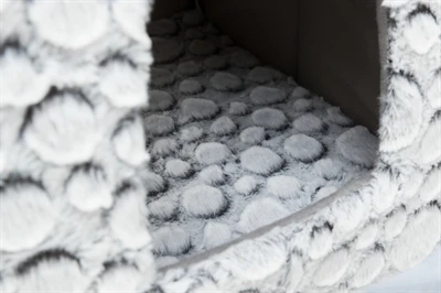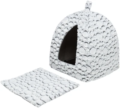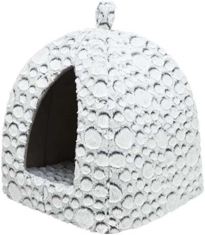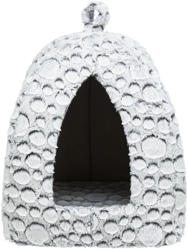 De Trixie Kattenmand Iglo Mila Pluche Wit/Grijs 32X32X42 cm is een originele schuilplaats voor de kat of kleine hond, een vormvast huisje bekleed met zacht pluche en voorzien van een kussen.