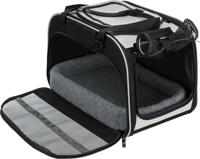 Trixie Kattentas Valery Zwart / Grijs 49X29X31 cm is een draagtas voor de kat die ook te gebruiken is als schuilplaats, ontwikkeld door dierenartsen. Jouw kat comfortabel mee op pad nemen doe je pas echt met deze kattentas woon- en transporttas Valery van Trixie. Deze tas is ontwikkeld in samenwerking met een in katten gespecialiseerde dierenarts. De tas kan gebruikt worden voor transport, maar ook als schuilplek. De tas is aan de voor- en zijkant te openen en uitgerust met een uittrekbare vormstabiele binnenmand van pluche. De tas is voorzien van vier handgrepen en een schouderriem, die opgeborgen kunnen worden wanneer de tas niet voor transport gebruikt wordt. Gemaakt van vormvast EVA met polyester en met buitenvakken om dingen in op te bergen. Een zeer complete tas, die reizen voor de kat zo comfortabel mogelijk maakt!
