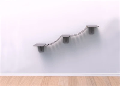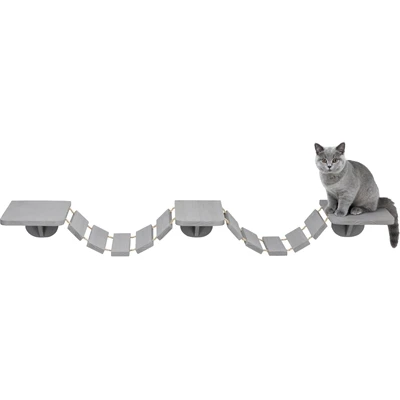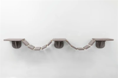 Deze Trixie Klim en Klauterladder Wand Taupe 150 x 30 cm bestaat uit enkele speelplateaus voor katten verbonden met een ladder, voor bevestiging aan de muur.