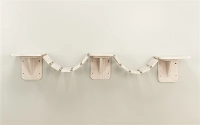 Jij maakt van jouw huis een echt speelparadijs voor jouw kat met deze Trixie Klim en Klauterladder voor aan de wand! Dit klimmeubel is speciaal gemaakt om aan de muur te hangen. Het speelparadijs bestaat uit drie plateaus, twee van 22,5 x 30 cm en één van 17,5 x 30 cm, die verbonden zijn met trappen van hout en sisal. Jouw kat kan zo hoger gelegen plekken bereiken en alles mooi overzien. Het product past mooi in elk interieur door de strakke uitvoering en taupe-kleur.