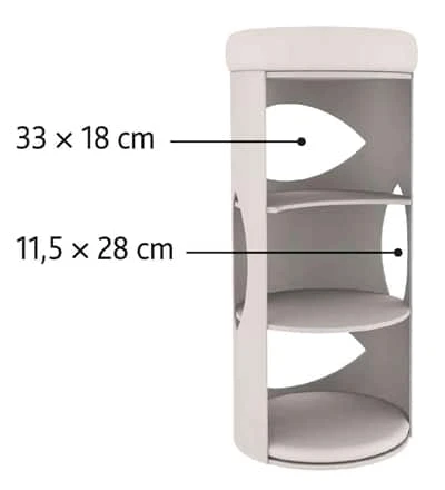 De Trixie Krabton Gracia Lichtgrijs/Grijs van 38X38X85 cm is een krabmeubel voor katten, een ton met meerdere schuilplaatsen, relax-mand, kussens en sisal-krabvlak. Er zijn twee dingen die katten het liefste doen: krabben en luieren! Met krabben markeren katten hun territorium en onderhouden zij hun nagels. Deze krabton heeft grote krabvlakken van sisal om jouw kat daar de gelegenheid toe te geven en te voorkomen dat jouw kat zijn nagels slijpt aan het meubilair. Ook biedt dit krabmeubel verschillende comfortabele ligplekken, met schuilplaatsen binnenin bekleed met pluche, kussens en een ligplateau met afneembare relax mand bovenop. Stevig door de simpele vorm en heerlijk om lekker in weg te dromen!