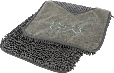 De Trixie Handdoek Met Insteekzakken Grijs 78X32 cm is een microvezel handdoek speciaal voor het snel drogen van de hond. Deze handige handdoek zorgt met zijn extra lange microvezels voor een goede vocht- en vuilabsorptie. Dit zorgt voor een ultieme vochtopname en maakt dat jouw hond snel af te drogen is na een bad of regenbui. De twee praktische insteekzakken zorgen voor een goede houvast.