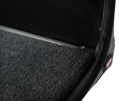 De Trixie Soft Kennel Easy Reisbench Grijs 71X51X49 cm is een reisbench voor de hond, met stevig metalen frame, stoffen omheining en ligmat met schapenvachtlook. Ideaal om mee te nemen wanneer jij met jouw hond of kat op visite, of reis of naar beurzen of tentoonstellingen gaat! Deze gemakkelijk op te zetten mobiele kennel voor de hond bestaat uit een stevig metalen frame, met een omlijsting van polyester. De gaas inzetstukken zijn gemakkelijk op te rollen en zorgen voor een goede ventilatie. De bench is aan drie kanten te openen voor een goede bereikbaarheid tot het dier en door de drie handgrepen gemakkelijk te verplaatsen. De bench is voorzien van een ligmat met schapenvachtlook (polyester) voor meer comfort voor het dier. De vorm en het uiterlijk van de bench maken hem geschikt voor vele mogelijkheden.