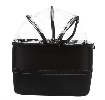 De mand is gemaakt van vormvast EVA met een gaasafdekking, die zorgt voor een goede bescherming. Het dier kan zo niet uit de mand springen en toch wordt er voor een goede luchtcirculatie gezorgd. Ook heeft de mand een regenkap voor reizen bij slechte weersomstandigheden. En heb je de afdekking toch liever open? Dan kun je jouw dier vastmaken aan de geïntrigeerde korthouder, zodat de hond of kat lekker om zich heen kan kijken zonder dat hij uit de mand springt.Â