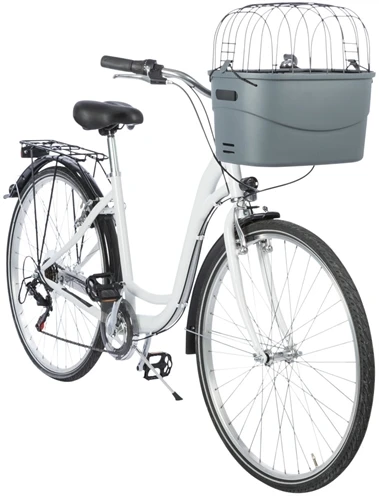 Jouw hond gaat overal mee naartoe met deze handige fietsmand! Deze mand is gemaakt van een kunststof bak met een gaasafdekking. Dankzij de universele houder is de mand geschikt voor bijna alle fietsen en eenvoudig af te nemen door een klik-snelsluiting. Voor meer comfort is deze mand uitgerust met een slipvaste ligmat én een bevestigingsmogelijkheid voor een korthouder. De bescherming tegen klapperen zorgt voor fietsen zonder overlast.