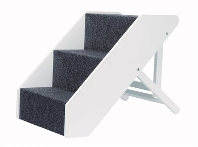 Heb jij een oudere hond, wat minder mobiele kat of een dier dat moet herstellen van ziekte? Of heb je een kleine hond, en een hoge bank? En wil je toch dat hij of zij gewoon al zijn favoriete plekjes kan bereiken? Dan is deze Trixie trap met een verstelbare hoogte van 40 tot 47 cm is de ideale oplossing. Deze handige trap is gemaakt van gelakt MDF en dus duurzaam en stevig. Je kunt de trap overal neerzetten waar je wilt, zodat je dier gemakkelijk wat hoger gelegen plekken kunt bereiken zonder dat hij of zij hoeft te springen. Zo kan jouw dier dus op verhogingen in de kamer, de bank of het bed op komen zonder dat het lijf teveel belast wordt. De treden zijn bovendien bekleed met vilt voor meer grip heeft en uitglijgevaar wordt geweken. De trap is drievoudig in hoogte verstelbaar (40/44/47 cm) en inklapbaar, zodat hij ruimtebesparend opgeborgen kan worden.Â