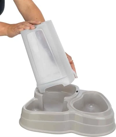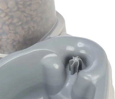 De Trixie Voer- En Waterdispenser Kunststof Grijs/Taupe 3,5 ltr is een handige dispenser voor voer of water, van kunststof en slipvast. Jouw dier komt nooit meer zonder voer of water te zitten met deze handige dispenser van Trixie! De voerdispenser is makkelijk te vullen door het afneembare dekseltje. De voerdispenser geeft geleidelijk de inhoud af, zodat jouw dier altijd voldoende in zijn bak heeft. Draai simpelweg een PET-fles op de waterdispenser. De dispenser is gemaakt van kunststof en slipvast door de rubberen voetjes, waardoor hij niet verschuift bij het eten. De dispenser is vaatwasser bestendig, mits de rubberen delen eerst verwijderd worden.